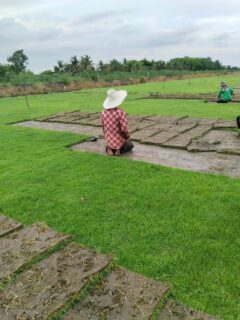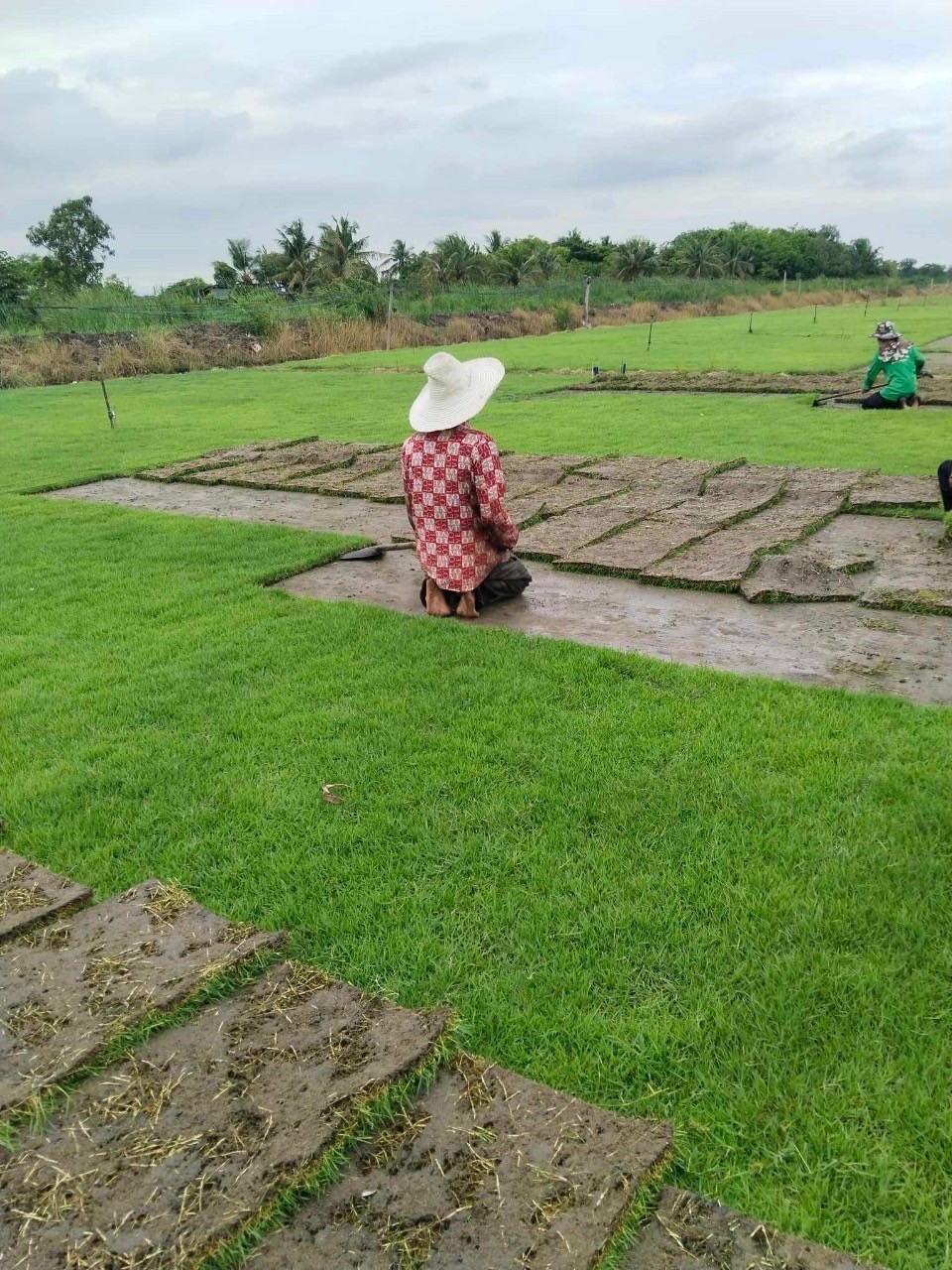 - นำลูกกลิ้งมาบดทับบนหญ้าเพื่อทำให้หญ้าเรียบเสมอเท่าๆกัน หญ้าที่เราจำหน่าย