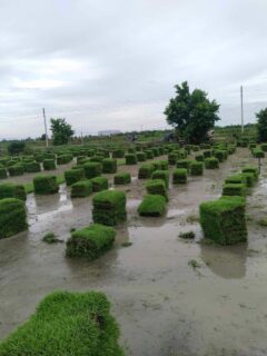 หญ้าเบอร์มิวด้า : เป็นหญ้าที่มีใบละเอียด เนื้อใบค่อนข้างหยาบทนกว่าหญ้าชนิอืนน้ำท่วมก็ไม่ตาย นิยมปลูกตามสนามกอล์ฟ